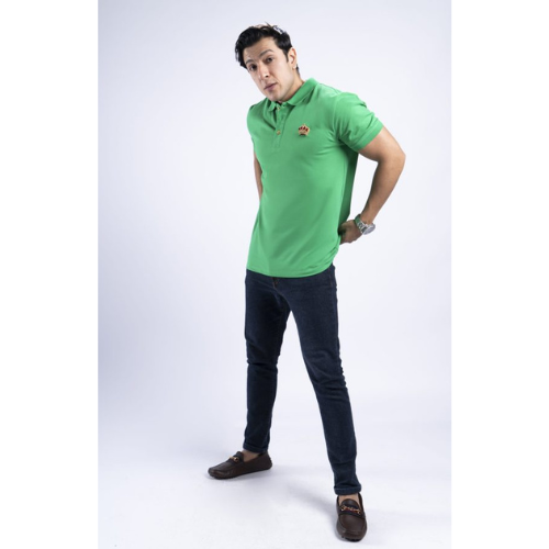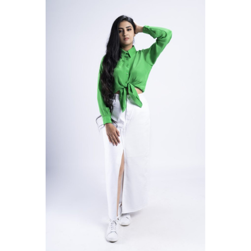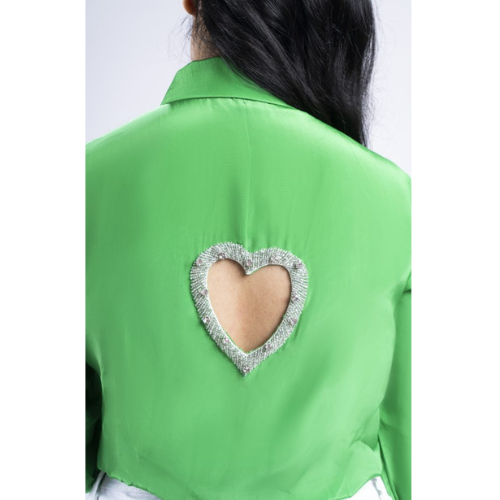 Elegant Green Satin Shirt with Playful Oversized Heart